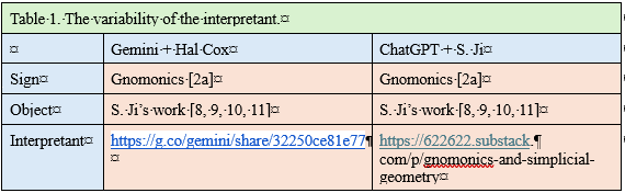Interpretant (ChatGPT): Substack article integrating semiotics and geometry (see the last row of Table 1).