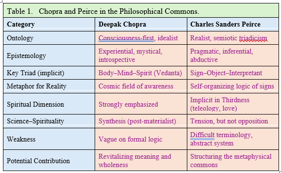 Is the PSGIT triad a viable architecture for reviving the philosophical commons? Can Chopra’s spiritual metaphors and Peirce’s semiotic realism be reconciled?