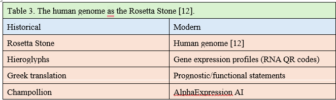 Just as the Rosetta Stone aligned Egyptian with Greek, AlphaExpression will align molecular data with clinical meaning.