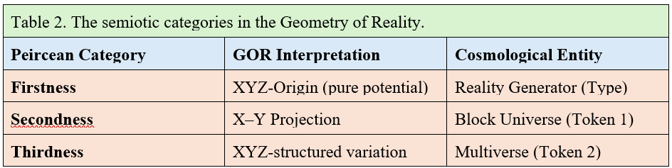 The Block Universe and the Multiverse are not rivals. They are ontological siblings; tokens projected from a shared Type, the XYZ-origin of the Geometry of Reality. In this view, GOR is not just a metaphysical model—it is a new theology of emergence, a scientific cosmogram of how Reality knows itself.