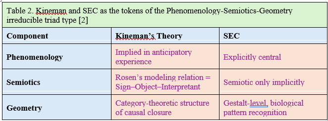 Despite their different starting points, Kineman and SEC can be viewed as tokens of a common triadic type:
